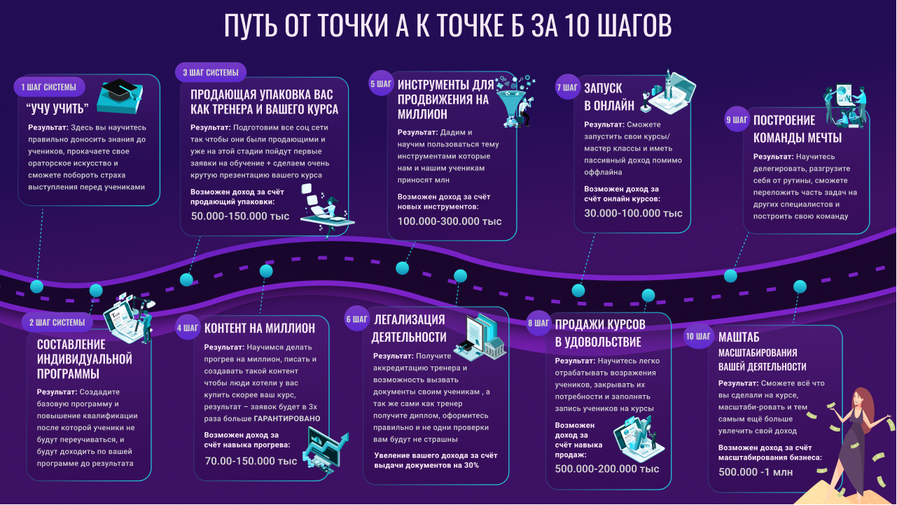СОЗДАЙ И ЗАПУСТИ СВОЙ ОФФЛАЙН/ОНЛАЙН КУРС ЧЕРЕЗ 10 СТУПЕНЧАТУЮ СИСТЕМУ И ЗАРАБАТЫВАЙ ОТ 500 000К В МЕСЯЦ